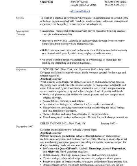 Fashion Resumes Examples. Fashion Designers create garments and accessories and usually focus on a specialist area, like menswear or sportswear. Targeting a specific job in the fashion industry?