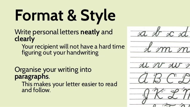 Writing A Personal Letter Format. A Personal letter is sent from one individual to another individual or organisation in order to address matters of an informal nature. Since a letter is a formal mode of communication, you'll want to know how to write one that is professional.
