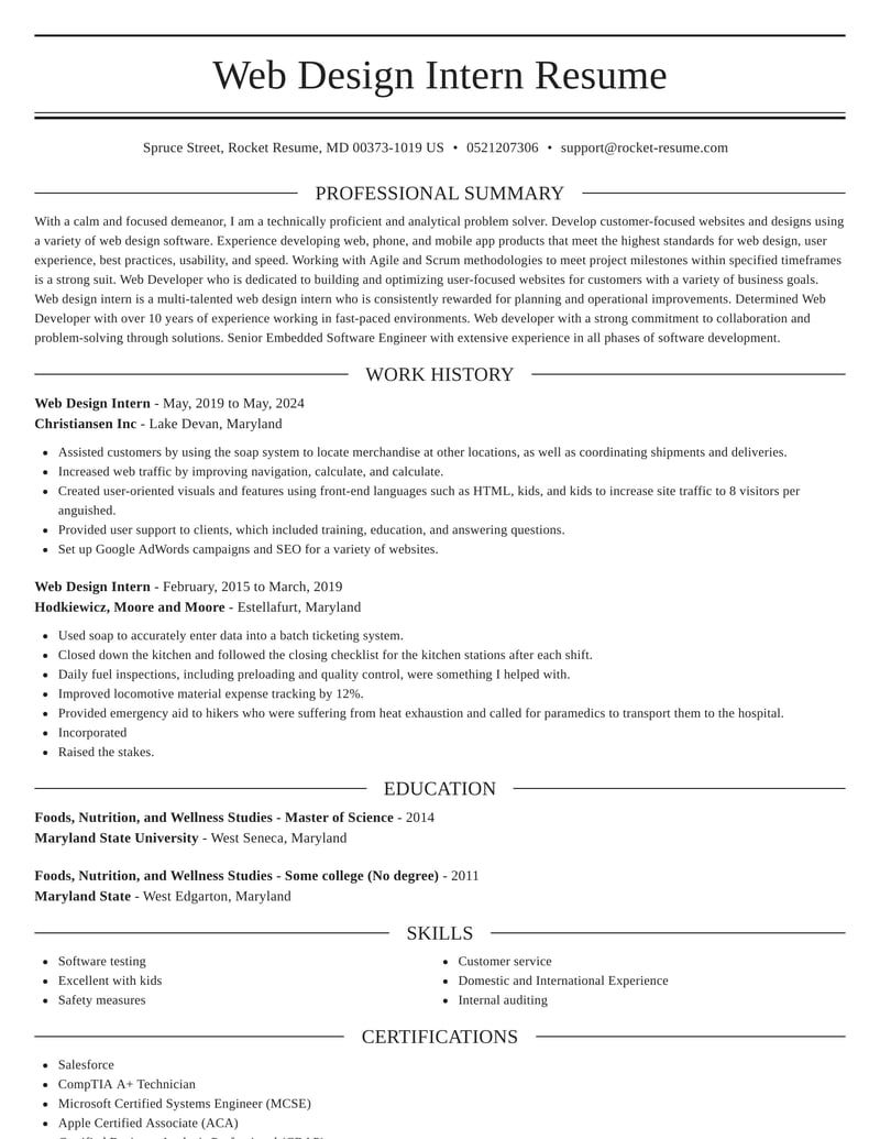 Web Design Intern Resumes | Rocket Resume