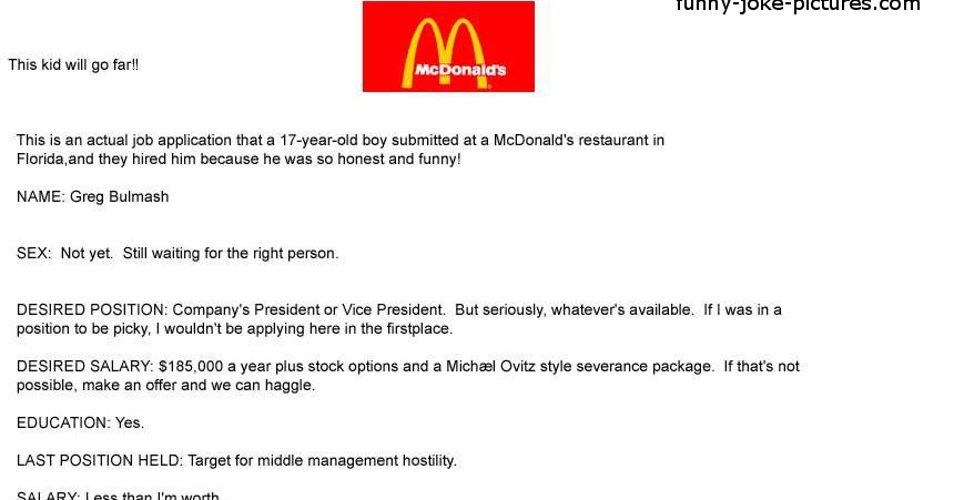 McDonalds Job Application ~ Funny Joke Pictures